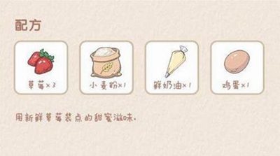 在游戏小森生活中,玩家们可以在游戏中进行各种各样的游戏冒险,还可以收集各种各样的食材来制作不同的食物,那么其中草莓蛋糕该怎么做呢?下面就来看看食物小森生活草莓蛋糕的制作配方吧。