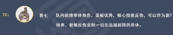 前排输出,单体输出角色,核心技能反伤,有一定的坦克能力。