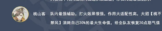 最强辅助,打火效果非常的强,适配能力非常的强,大招可以消耗自身30%血量,全体怒气提升30点。