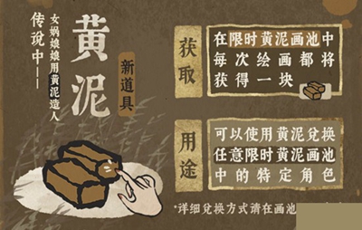 1、黄泥可用来兑换特定的角色,可以兑换任意限时黄泥画池中的特殊角色,