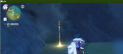 2、在接近目的地的时候大家可以看到有任标识,在旁边的山有道裂缝可以进入。