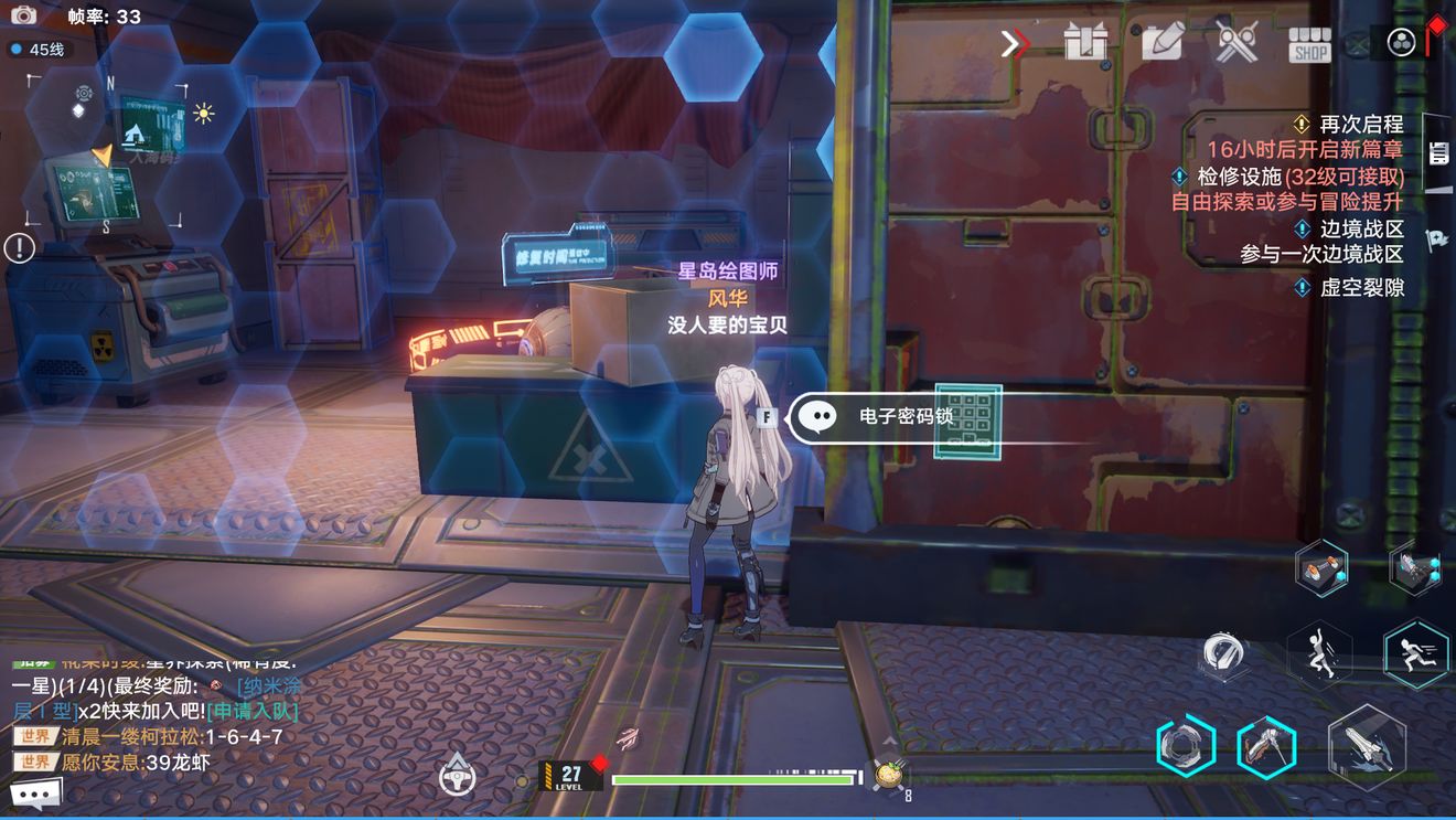 2、在码头可以找到一个屏障宝箱,使用密码:3594,即可打开宝箱获得幻塔旅行者号控制室。
