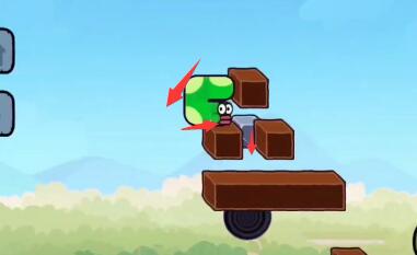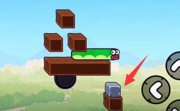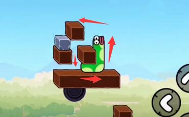 1、首先我们进入关卡先不吃苹果,第一步先把石头推到左侧的台子上面,也就是苹果上方。