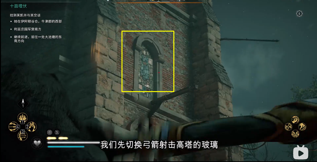 2、用弓箭射玻璃,并从窗子爬进去;