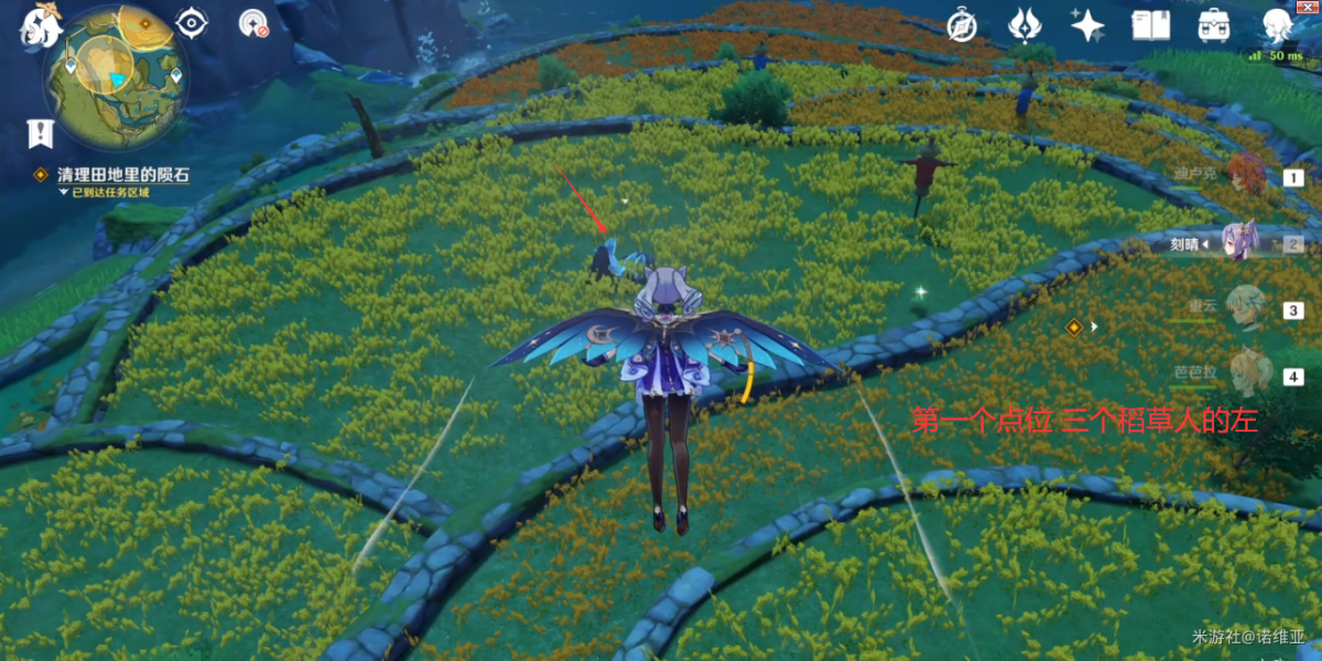2、之后去轻策庄和千岩君对话,需要清理田地里的陨石: