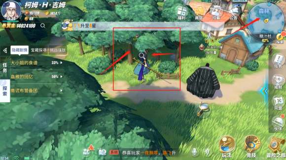2、然后,你去森林附近,调查获取苹果,返回交给厨师即可完成任务。