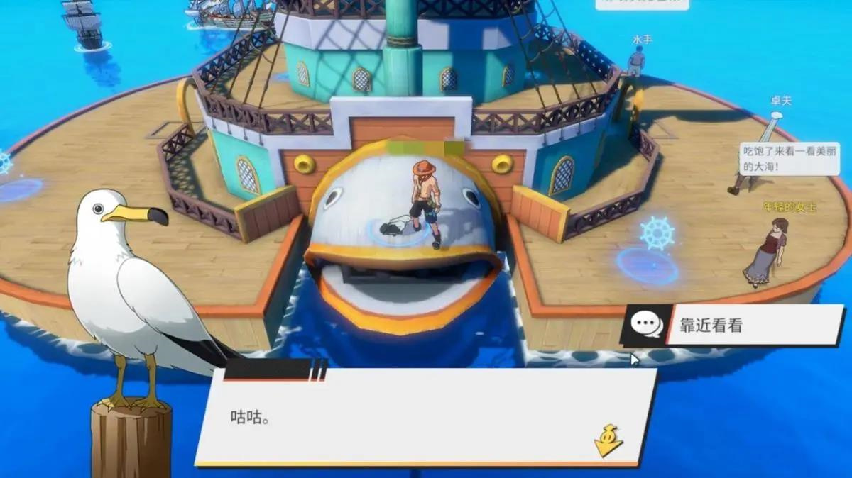 3、桅杆左侧,与NPC海鸥对话,给它食物;