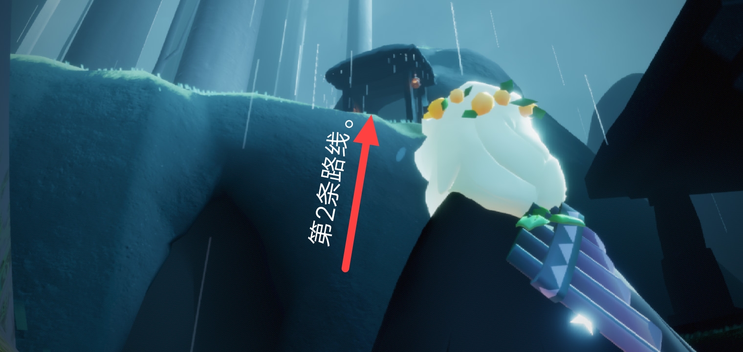 第2条路线是先到一位雨林先祖所在的亭子里,恢复能量,然后再向上飞,飞到第2个任务地点