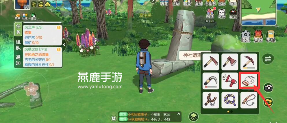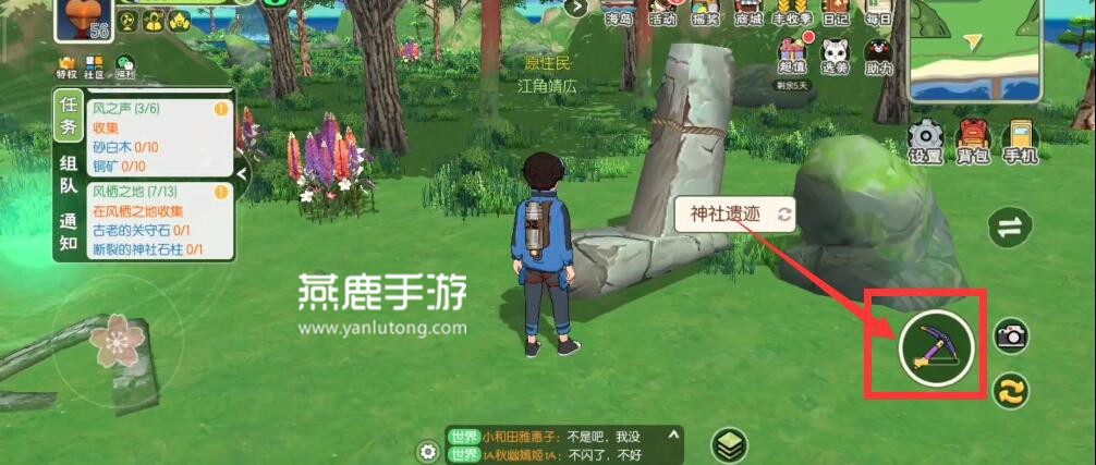 1、首先打开风之岛地图,在地图上找到神社遗迹并过去,点击下图的斧头;