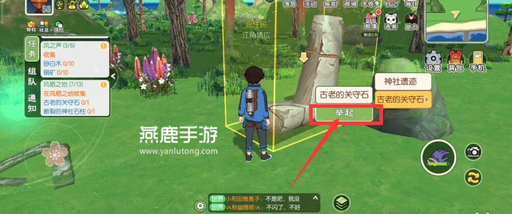 3、最后靠近古老的关守石,点击举起,即可完成收集任务。