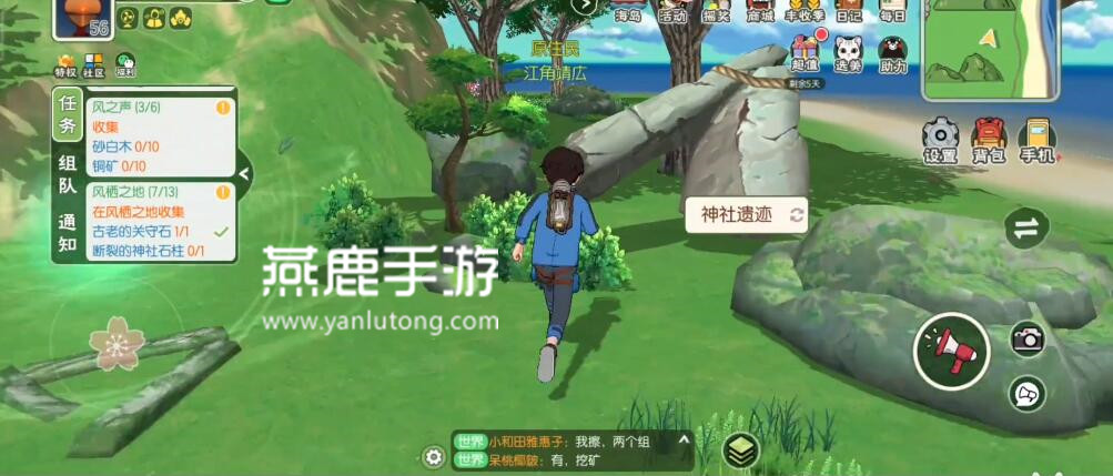 3、然后收集断裂的神社石柱,和上面的收集方法一样,在靠海的地方;
