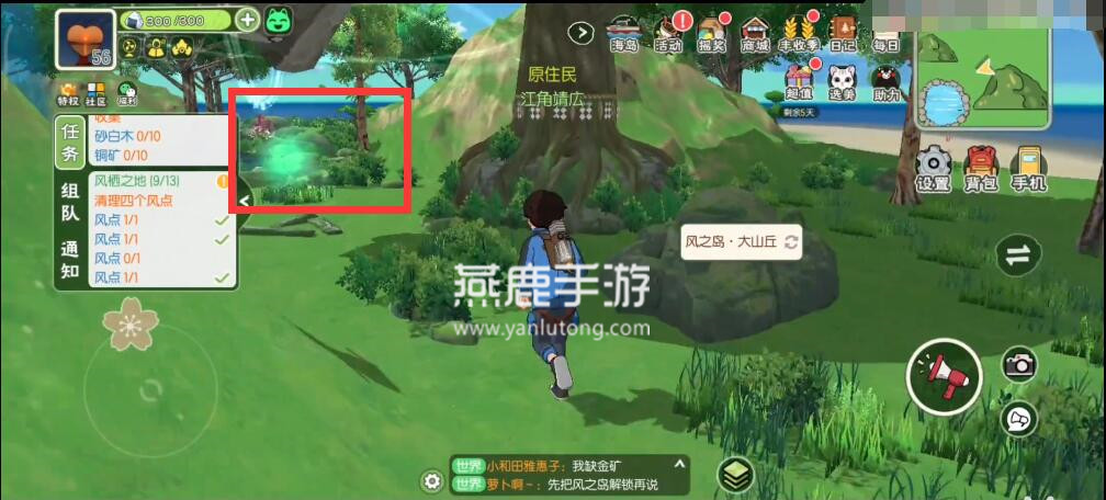 4、最后一个风点,在大石头的左边位置,稍微隐蔽一点,具体大家自行看小地图。