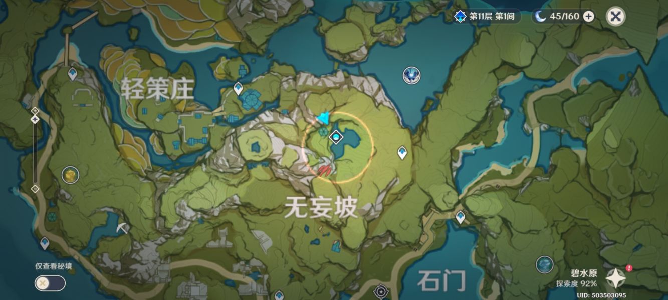 在无妄坡的秘境旁边,躲猫猫的外层圈内。