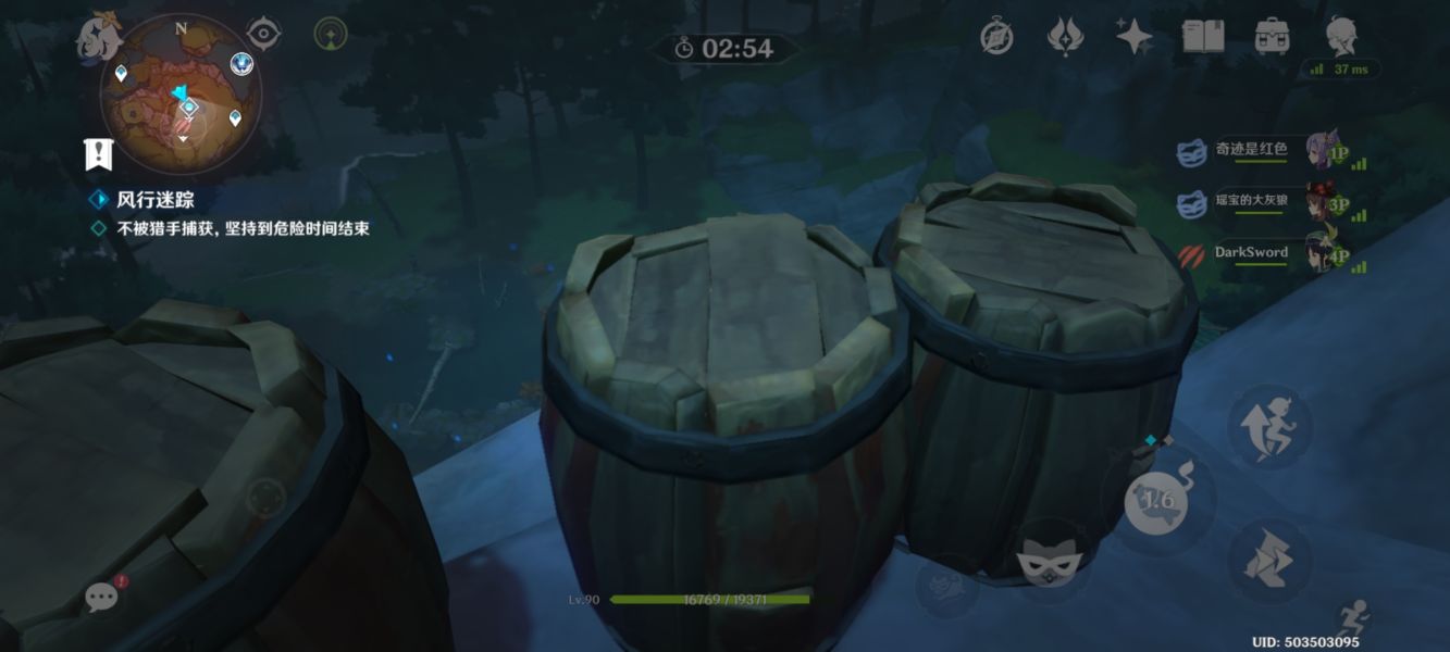 2、如果猎手也往上爬,你有充足的时间反应,可以飞到对面的树丛,变成木桶,不会被发现。
