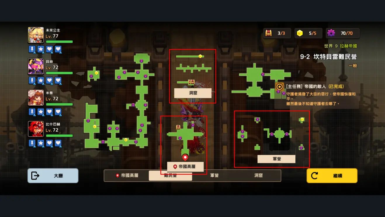 坎特伯雷公主与骑士世界9是拉赫地图,有坎特贝雷难民营、边界、大臣的住处,关卡需要参与挑战,具有一定的难度,为了方便大家收集,一起来看下坎公骑冠剑世界9全收集攻略。