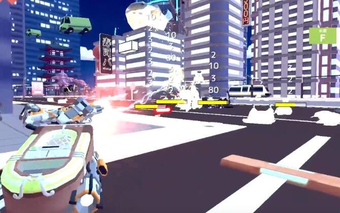 3、打的时候我们可以边推边打,金刚熊的攻击范围是有限的,当我们不在攻击范围之内,它就会变成警车的形态来追我们;