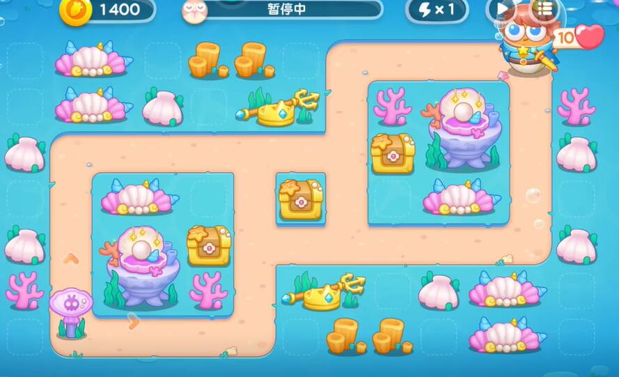 1、在左侧和中间偏左上侧的位置建造一个多重箭塔,左侧的清怪,中间的搭配上建造的一个纸飞机对上方的障碍物进行攻击。