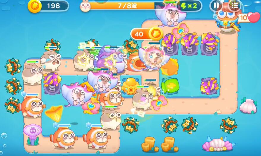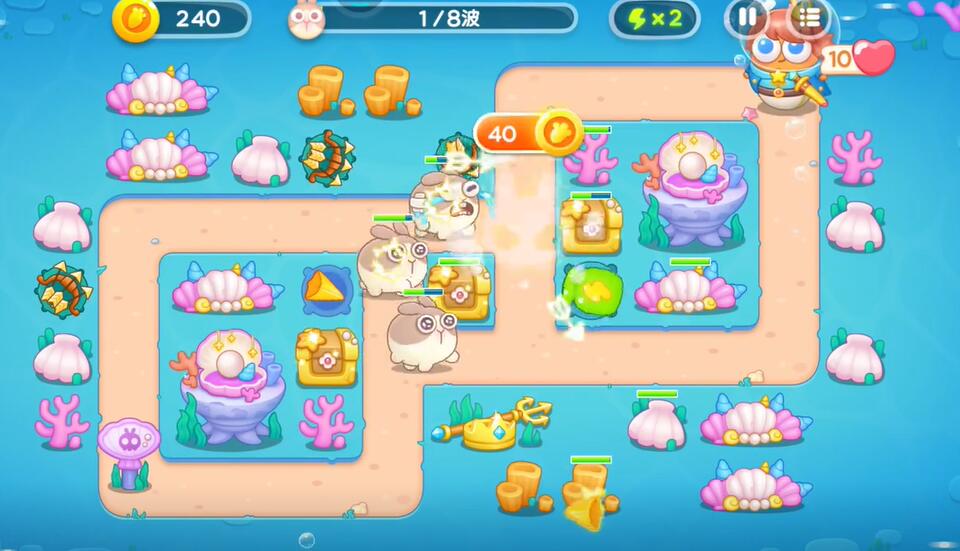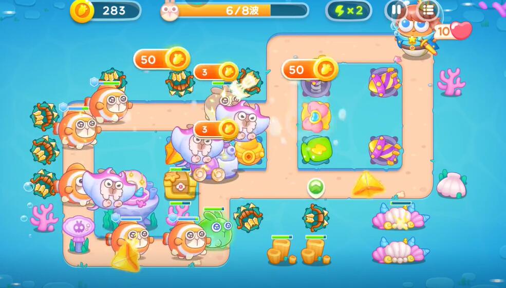 6、在左侧补充箭塔,右侧补充烟花塔来应对不同类型的兔子。