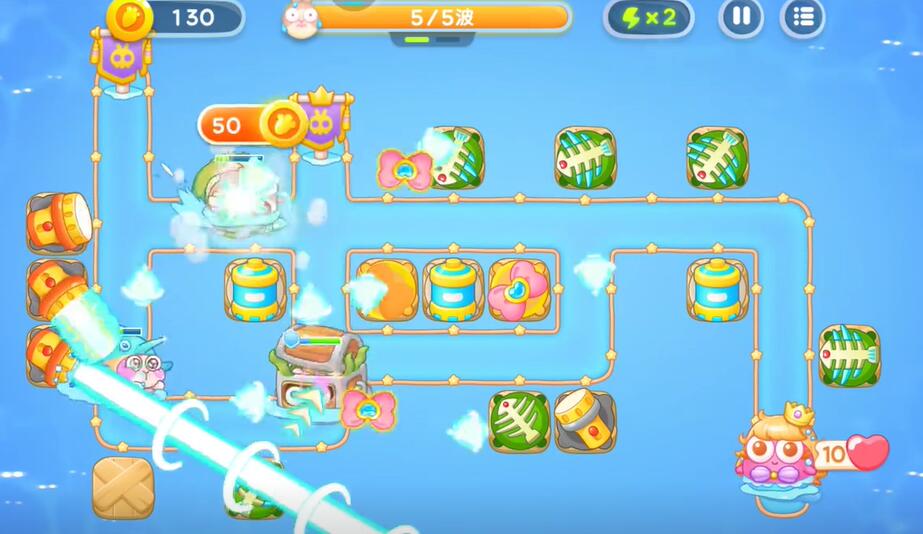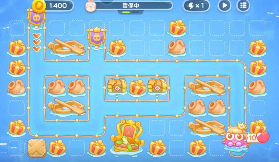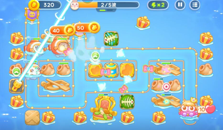 6、在两路的兔子都会走的路线上建造更多的防御塔,清理掉所有的兔子,即可完成本关的挑战。