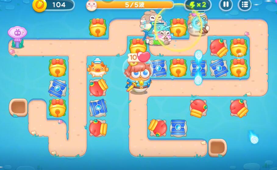 7、在右侧的道路和左侧的前往传送口的道路上建造更多的防御塔进行输出,清理所有的兔子即可完成本关的挑战。