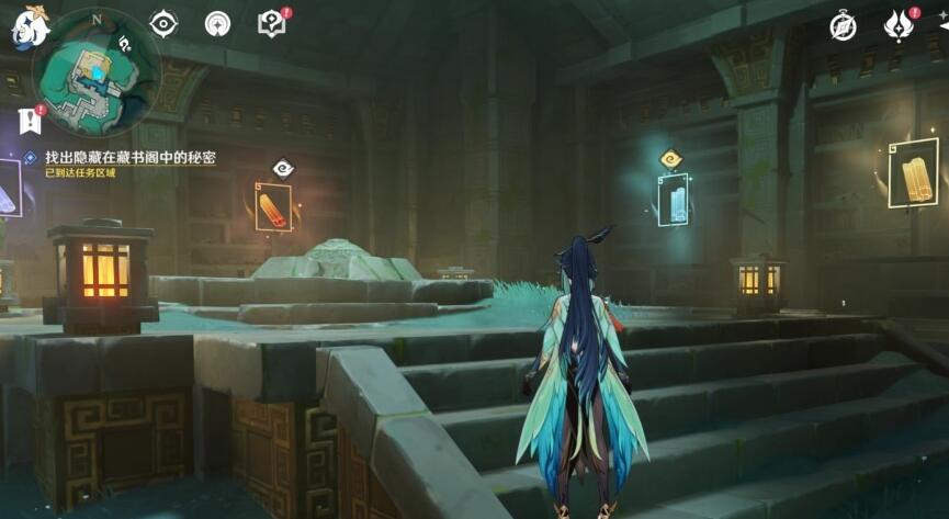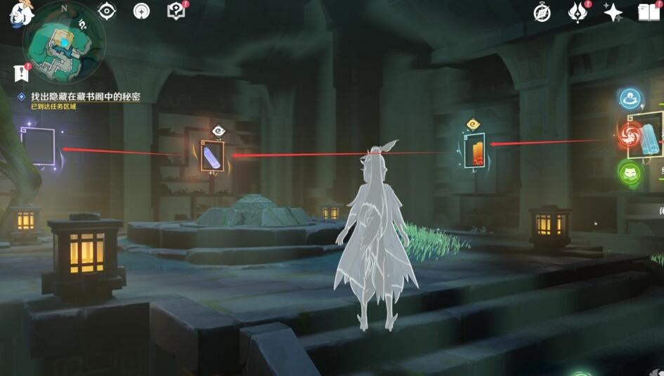 2、向前走对藏书阁进行探索,可以来到一个需要你开启机关的位置。