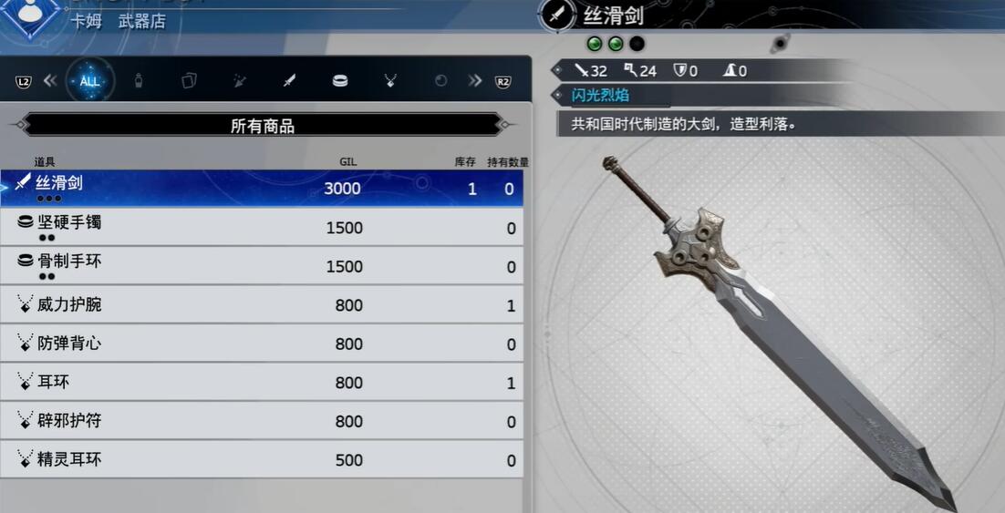 4、玩家也可以在卡姆市区的武器店,找到丝滑剑花费300GIL进行购买,但是这么干是比较亏的,并不建议。