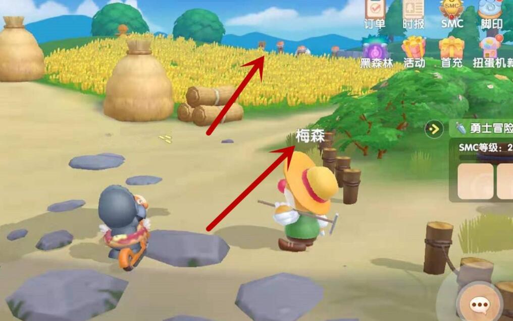 1、首先打开游戏,前往开心农场,去梅森前面的黄色麦田;