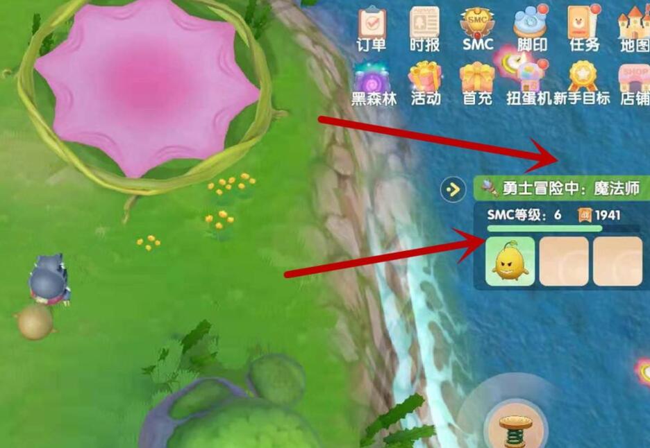 1、首先打开摩尔庄园,点击界面右边的勇士冒险中;