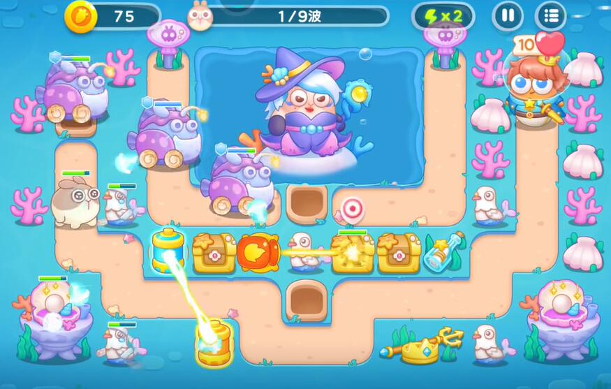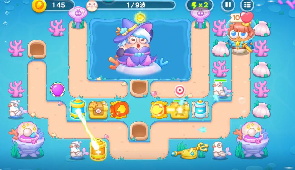 9、在左侧建造魔法球和减速塔,更好的清理小怪。