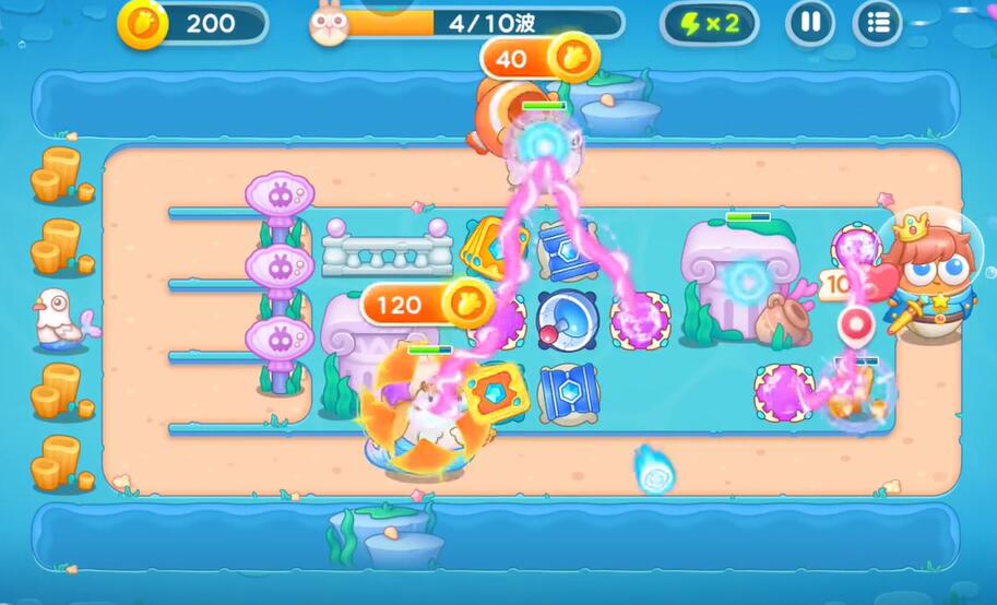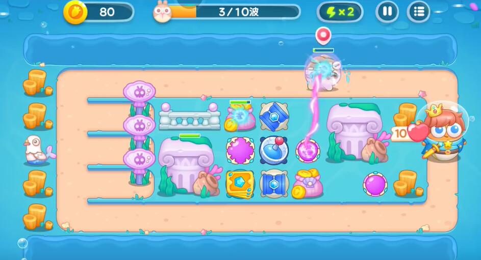 8、根据实际的情况补充更多的防御塔,清理掉所有的兔子,即可完成本关卡的挑战。