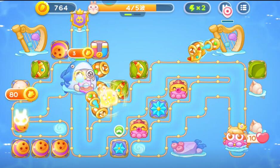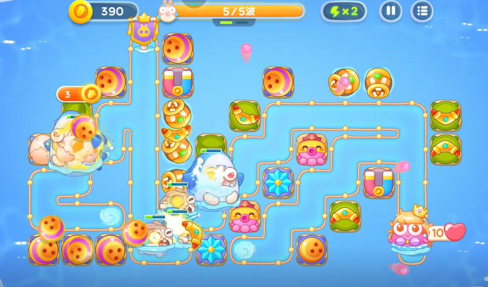 7、补充更多的防御塔清理掉所有的兔子,来完成这个关卡的挑战。
