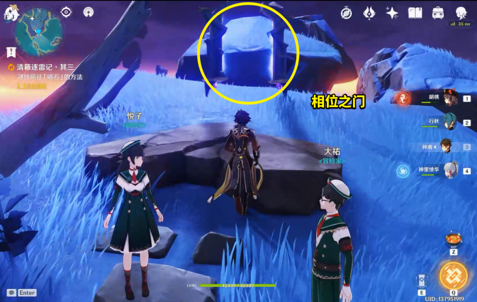 3、然后就需要前往镇石所在地,冒险家的后面有个相位之门,利用这个门,传送到高空;