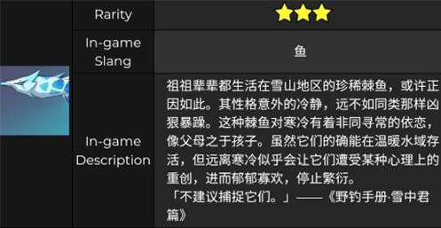 1、雪中君输入雪山的珍稀鱼类,只有龙脊雪山有分布,其他位置都没有;
