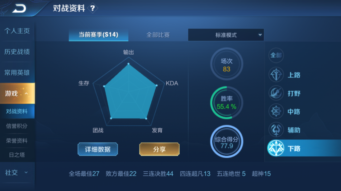 2、如果选了辅助,生存能力就会高于其他位置,发挥辅助的长处,也能得到高评分。