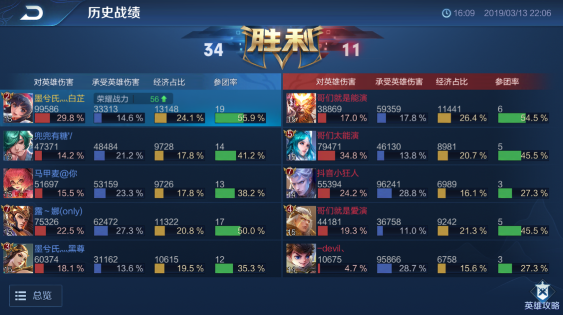 2、评分会从人头,死亡,助攻,参团率,输出值,推塔值,辅助值,伤害转化比中进行评分。