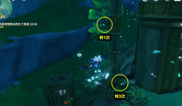 2、接着来到第一处先用异色猎刀鳐的能力斩断海草获得手轮。