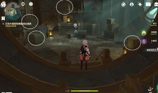 5、然后攻击图中4个木箱并调查。