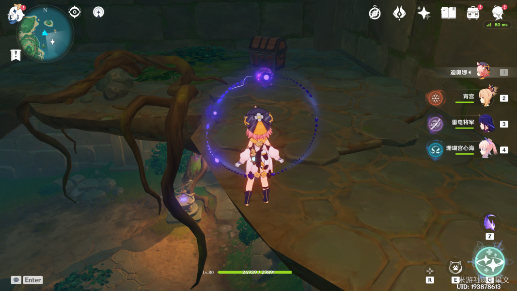 来到雷灵解谜处,往上看,可以看到平台。攀爬上去后,打开宝箱,获得第三颗宝珠。
