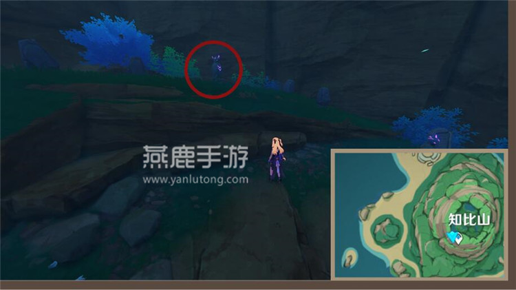 1、首先玩家打开地图,从知比山的传送点往下走,找到底部的雷鸟雕像;