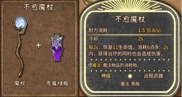 3、不愈魔杖(神级,魔法,黑暗,远程武器):魔杖+恶魔烧瓶