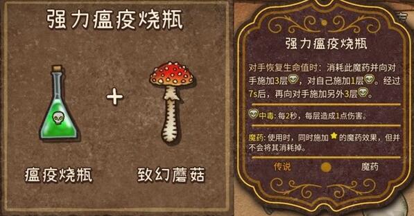 4、强力瘟疫烧瓶(传说,魔药):瘟疫烧瓶+致幻蘑菇