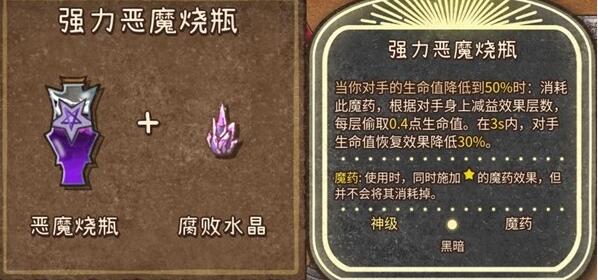 5、强力恶魔烧瓶(神级,黑暗,魔药):恶魔烧瓶+腐败水晶