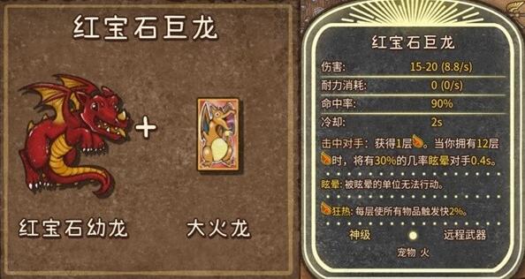 10、红宝石巨龙(神级,宠物,火,远程武器):红宝石幼龙+大火龙