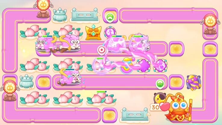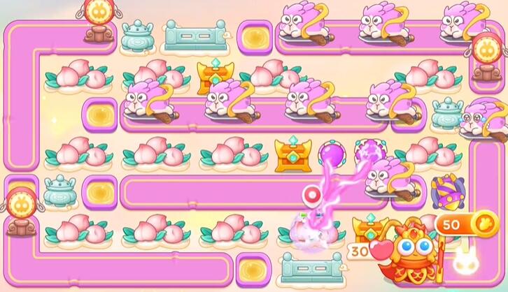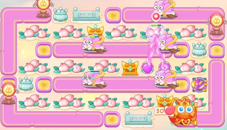 2、桃子打掉建立魔法球,继续打桃子。
