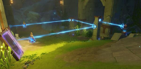 4、来到解谜机关处,对准晶体使用光束让晶体旋转180度。