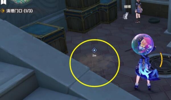 2、接着先使用水元素或者风元素将门口的尘土清理掉。