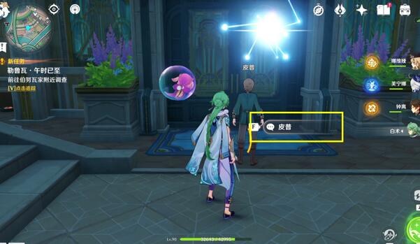 1、首先玩家需要将游戏内的时间调整到第二天即可自动接取任务,与门口的皮普对话。