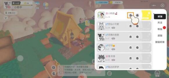 4、如果玩家想要去朋友的家园,打开好友的列表,点击小房子的按钮,就可以轻松的过去了。