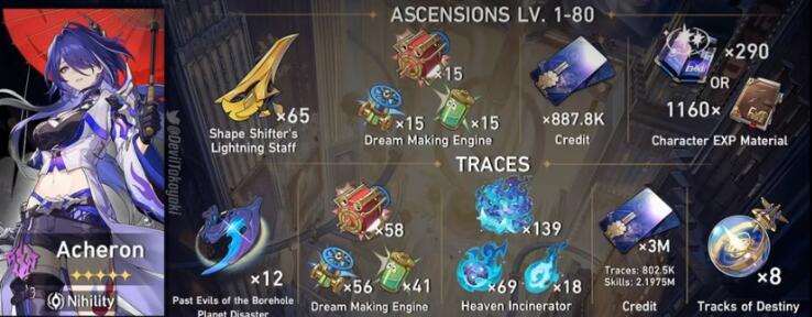 50级,微光原核×8、炼形者雷枝×5、 信用点×32000。