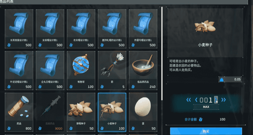 4、还可以传送去小型部落,去跟帕鲁商人交易获得小麦种子。